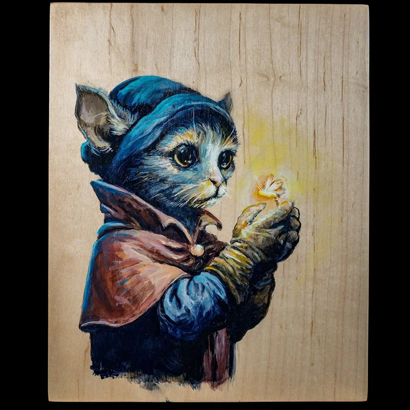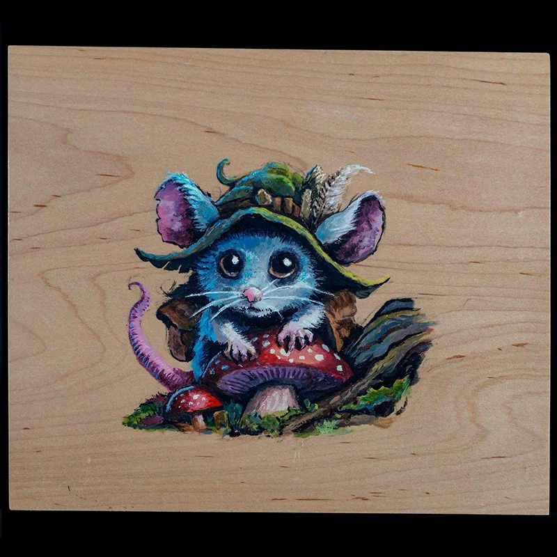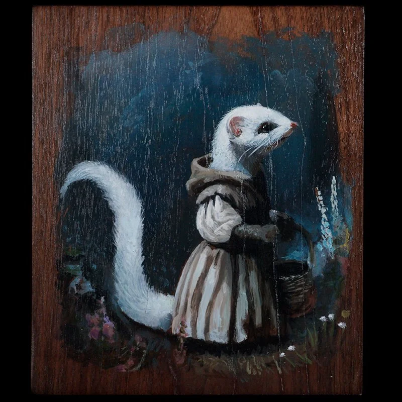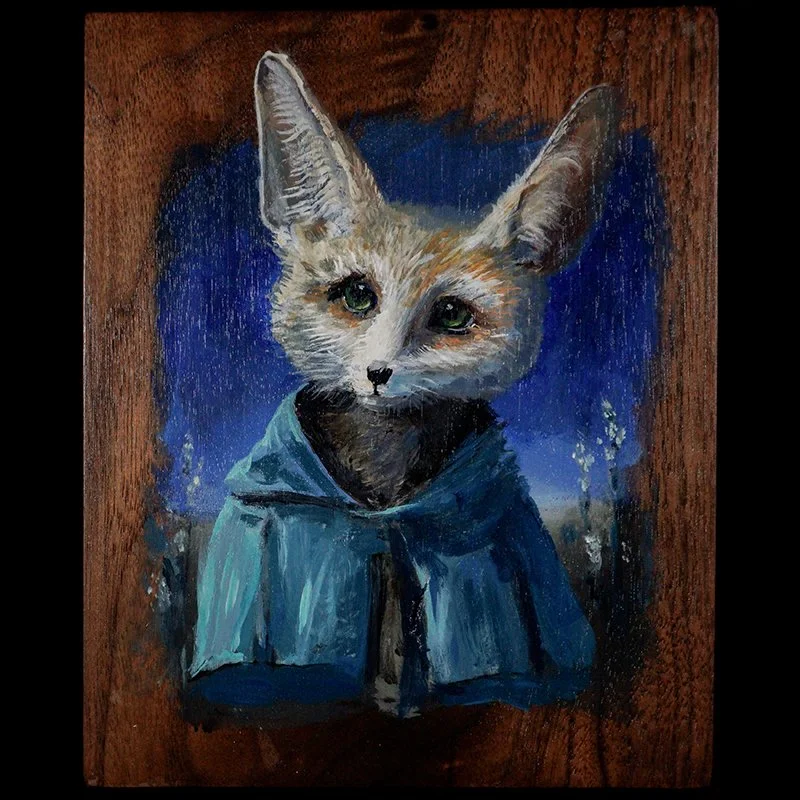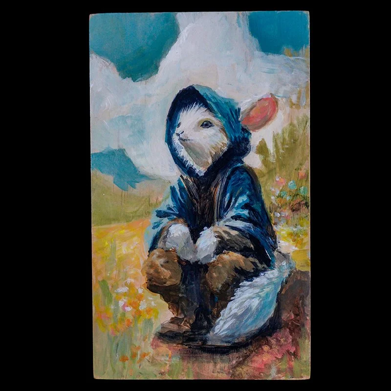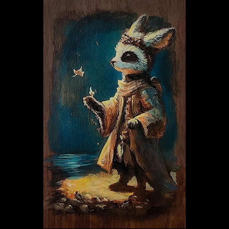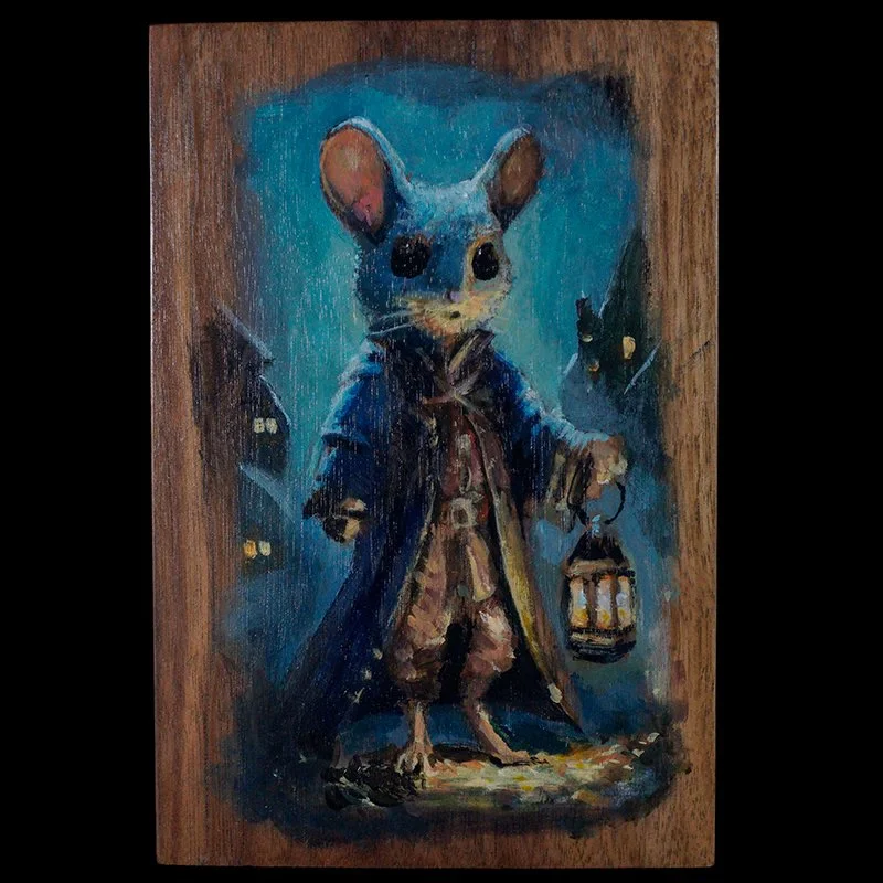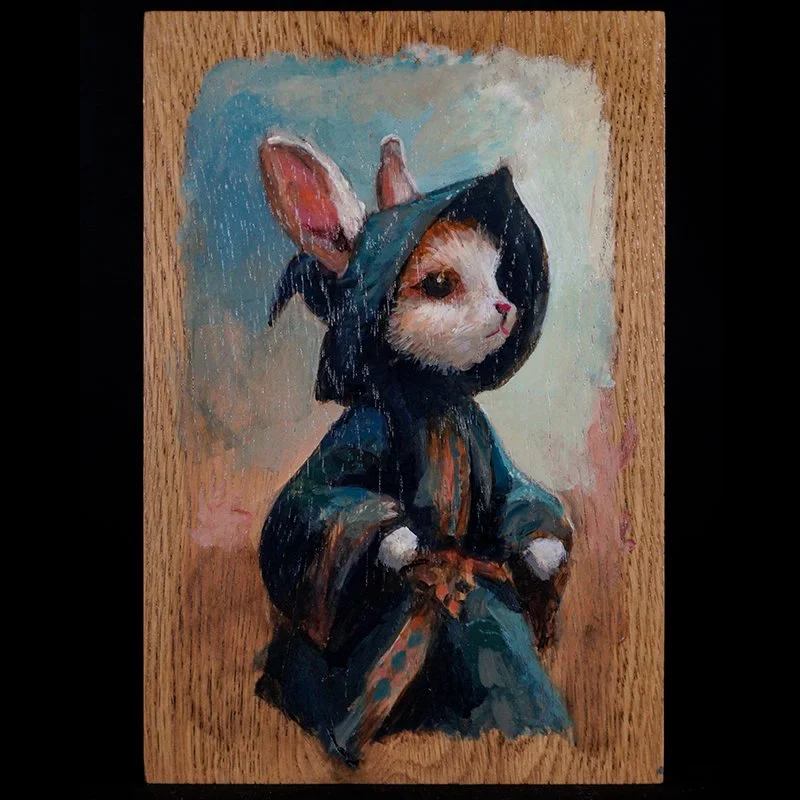 Woodland Wanderers are guardians of secrets, embodying survival amid peril. This collection features fantasy animals; mice, rabbits, ravens, wolves and even bats, rendered with unsettling innocence.